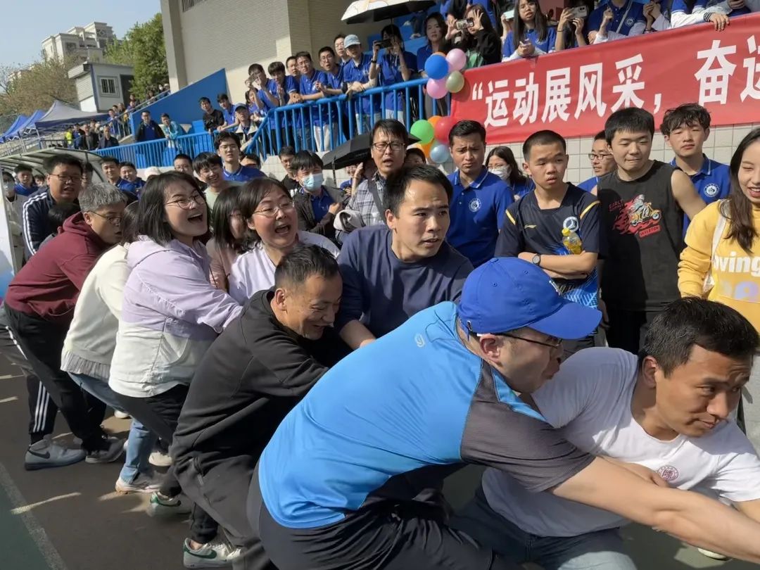 在拔河的赛场上挥洒汗水与激情!