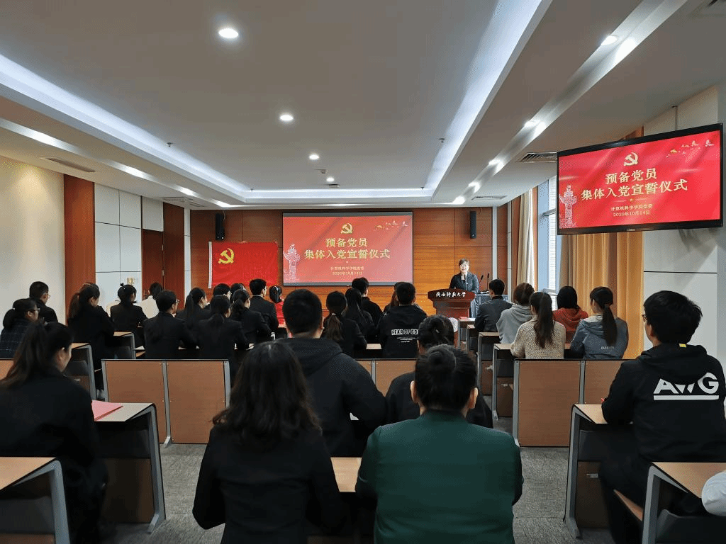 预备党员代表、2018级计算机科学与技术专业本科生孙毅同志发言。她表示,加入党组织,仅仅是一个共产党员万里长征迈出的第一步,一定会永远铭记面向党旗宣誓的这一刻,永远记住向党和人民许下的郑重承诺,把入党誓词作为终身追求、终身修养和终身实践。