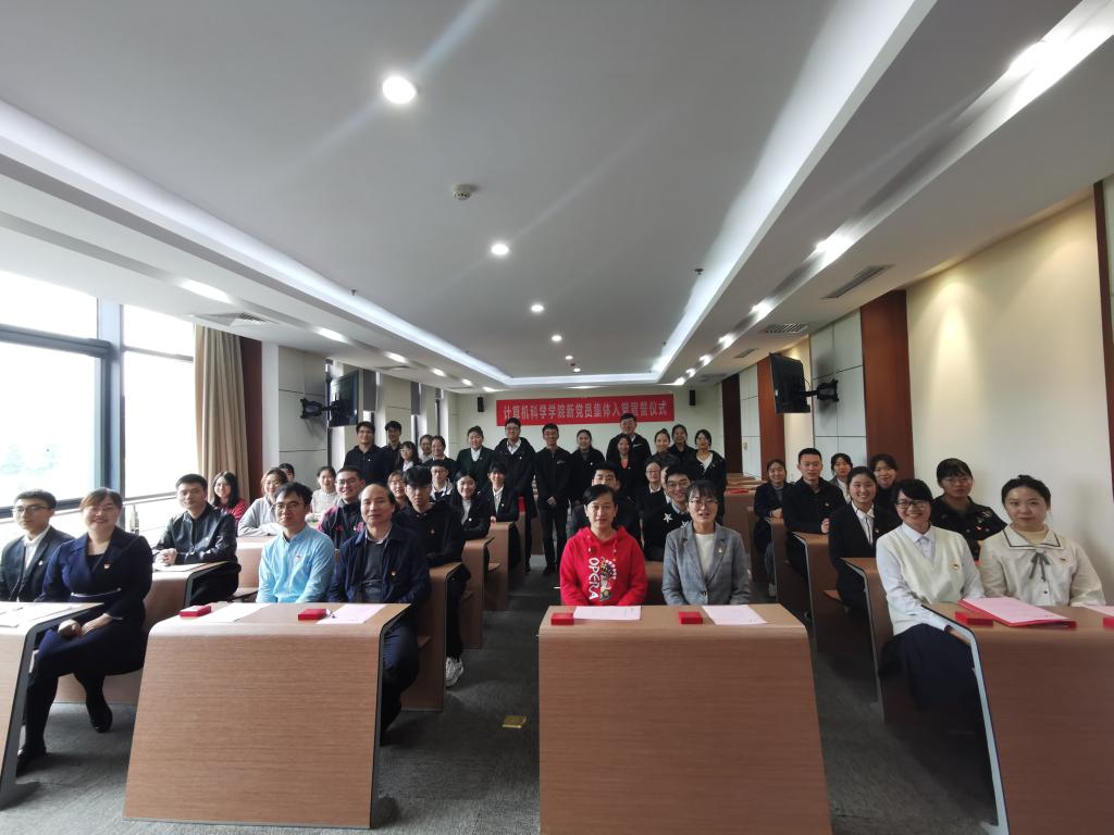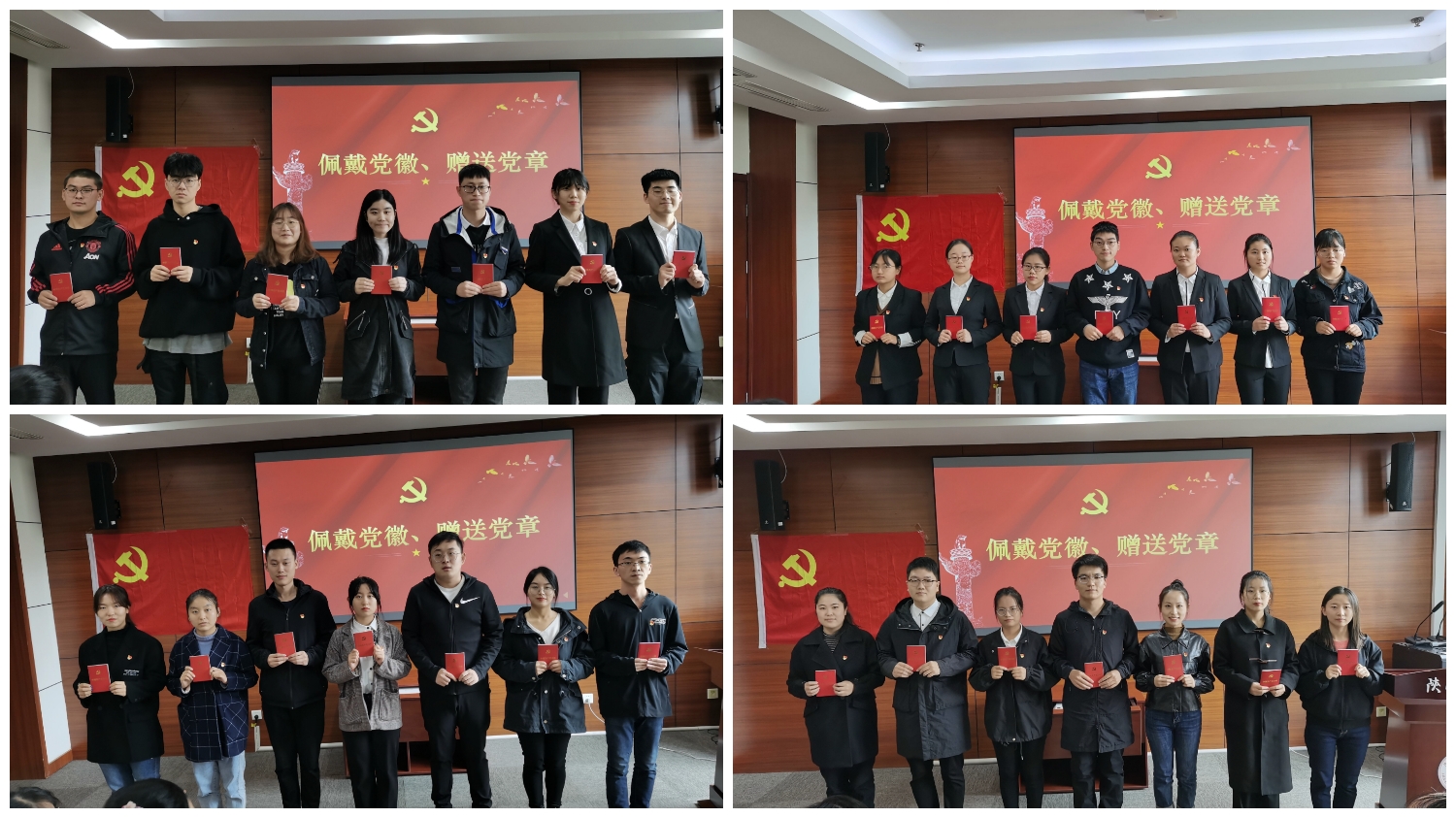 入党宣誓仪式在《国际歌》庄严雄壮的旋律中开始,全体参会人员起立肃穆。袁冰同志宣读了参加宣誓仪式的新党员名单。研究生2019级支部组织委员苟元帅同志担任领誓人,带领全体党员面向党旗郑重宣誓。学院党委委员、党支部书记为预备党员佩戴党徽、赠送党章。