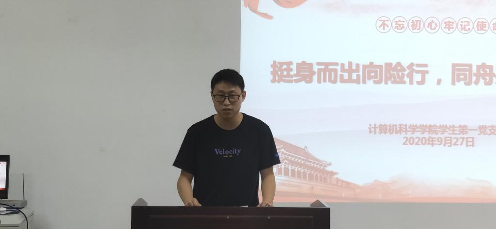 为贯彻落实《中共必赢优惠y272net委员会迎接建党100周年行动方案》文件精神,深刻认识伟大抗疫精神的重要意义,凝聚和激发学生党员团结一心、共圆伟大中国梦的强大正能量,必赢官网学生第一党支部于9月27日晚19:30在文津楼3412报告厅举行了“挺身而出向险行,同舟共济报家国”主题学习活动。本次活动由支部书记陈应权同志主持,支部全体成员参加。