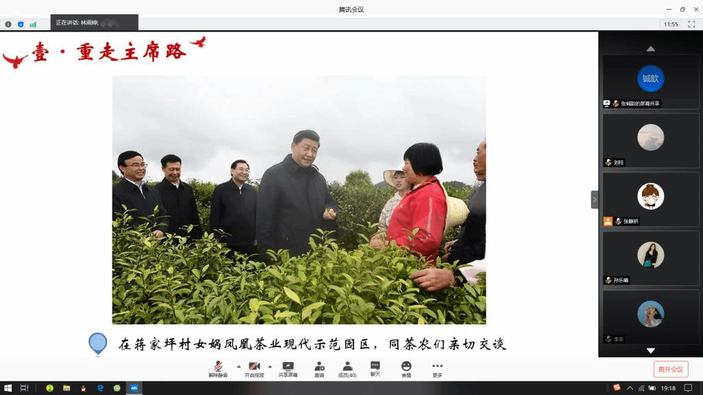 通过重走主席考察路,聆听习近平总书记的谆谆教诲,同志们既感受到习近平总书记对人民的亲切关怀、殷殷嘱托,也对“绿水青山就是金山银山”、“西迁精神”等有了更深刻的理解,更是意识到作为新时代大学生应当肩负起的时代使命与责任担当。陈依敏同志谈到,人与自然是生命共同体,经济发展决不能以破坏生态为代价;曹煦同志分享道,作为大学生,要在奋斗中追逐青春理想,砥砺“越是艰险越向前”的昂扬斗志;苗倩婧同志认为,践行爱国主义精神,我们应当始终坚持做到胸怀大局、心有大爱,切实肩负起新时代的历史使命;林俏伶同志表示,要不断强化思想理论武装,坚定理想信念,在党和国家需要的地方贡献青春力量;宋澳华同志提到,疫情期间新业态“无中生有”、传统产业“有中出新”,为防范化解经济下行压力提供了借鉴;王晓瀑同志说道,困难只会让我们变得团结,团结会让我们战胜困难;任洁同志则分享道,作为师大学子,要以“西部红烛精神”指引自己,为促进教育公平的事业贡献自己的力量。