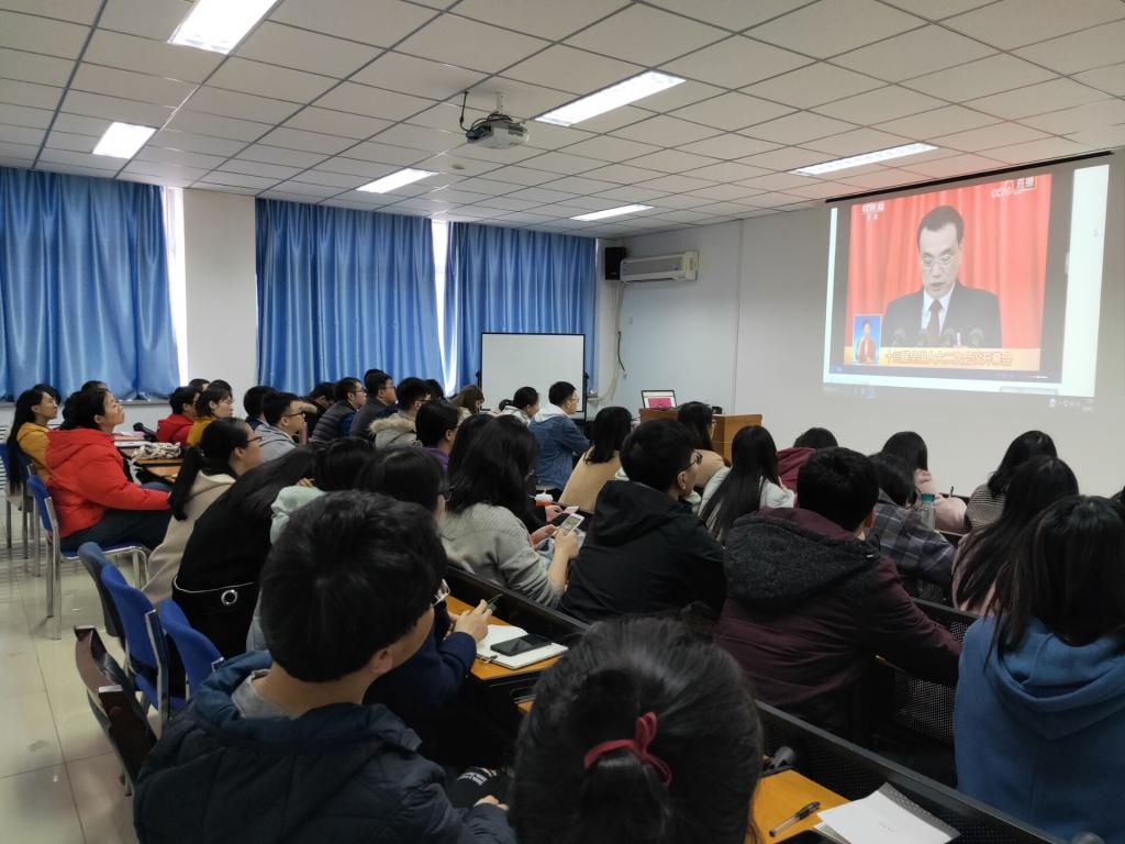第十三届全国人民代表大会第二次会议于2019年3月5日在北京隆重开幕。必赢官网于3月5日上午9:00组织学院领导班子、教师代表、部分学生党员、团员集体观看了两会开幕会,引导其他同学通过网络、报纸、手机客户端等多种渠道实时关注两会动态,认真跟踪两会进展,深入学习和贯彻两会精神。