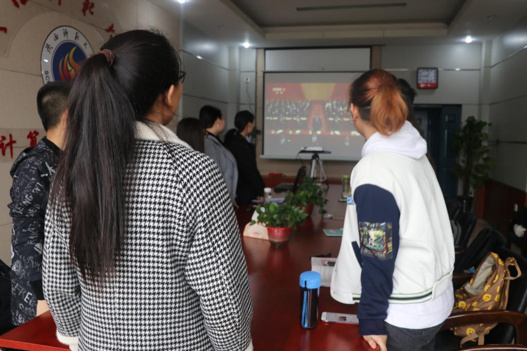 在收看开幕式的过程中,每位师生都聚精会神,一边认真观看直播,一边仔细地记录,师生代表在直播结束后畅谈体会。
