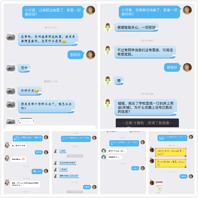 学校和学院十分关心大一新生。迎新期间,相关领导深入宿舍亲切看望新生及家长,在深切关怀之余,领导也对新生提出了要求,希望他们能以积极乐观的态度、良好的学习习惯来迎接新的征程。在交流过程中,学院领导还耐心解答了各位家长关于子女生活、学习上的问题。此外,在新生报道前,必赢官网已进行了家庭经济困难的新生家庭走访和云南新生关怀活动。在走访活动中,学院对受访家庭表示关怀,并送去了慰问品,还详细介绍了学校及学院相关情况、资助政策,解答了学生、家长的问题。因云南突发地震,辅导员安琪便在第一时间询问云南学生是否受灾,所幸均未受灾。