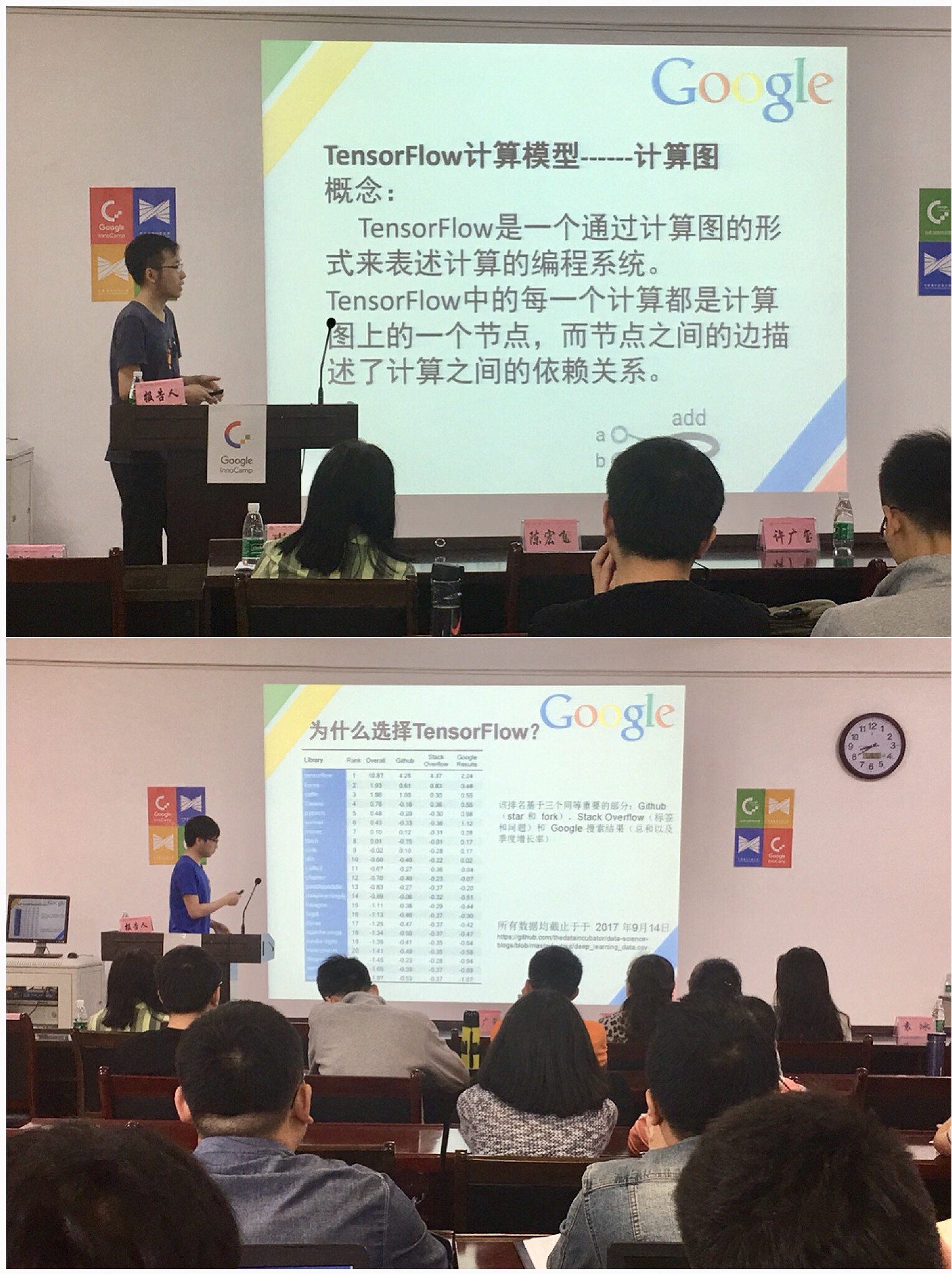 为响应国家关于大众创业、万众创新的号召,提高我校师生对Google人工智能相关技术的兴趣,开拓学术视野,促进校企合作,必赢优惠y272net与谷歌公司于5月27日在长安校区合作举办了主题为“人工智能技术的实践与创新应用”的2018年Google InnoCamp创新特训营活动。必赢优惠y272net教务处副处长许广玺、西安邮电大学教务处副处长王曙燕教授、地理科学与旅游学院副教授陈宏飞、梁伟、必赢优惠y272net副院长马苗教授、党委副书记袁冰、黄昭副教授参加了本次活动,必赢优惠y272net曹菡教授主持本次活动。我校必赢优惠y272net、地理科学与旅游学院部分研究生、本科生及西安邮电大学等外校同学通过网上报名和选拔参加了本次活动。