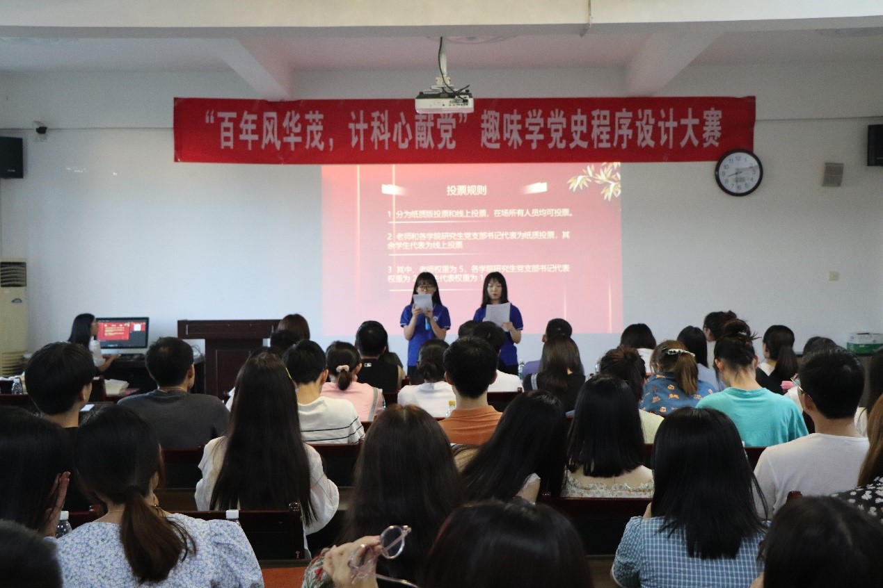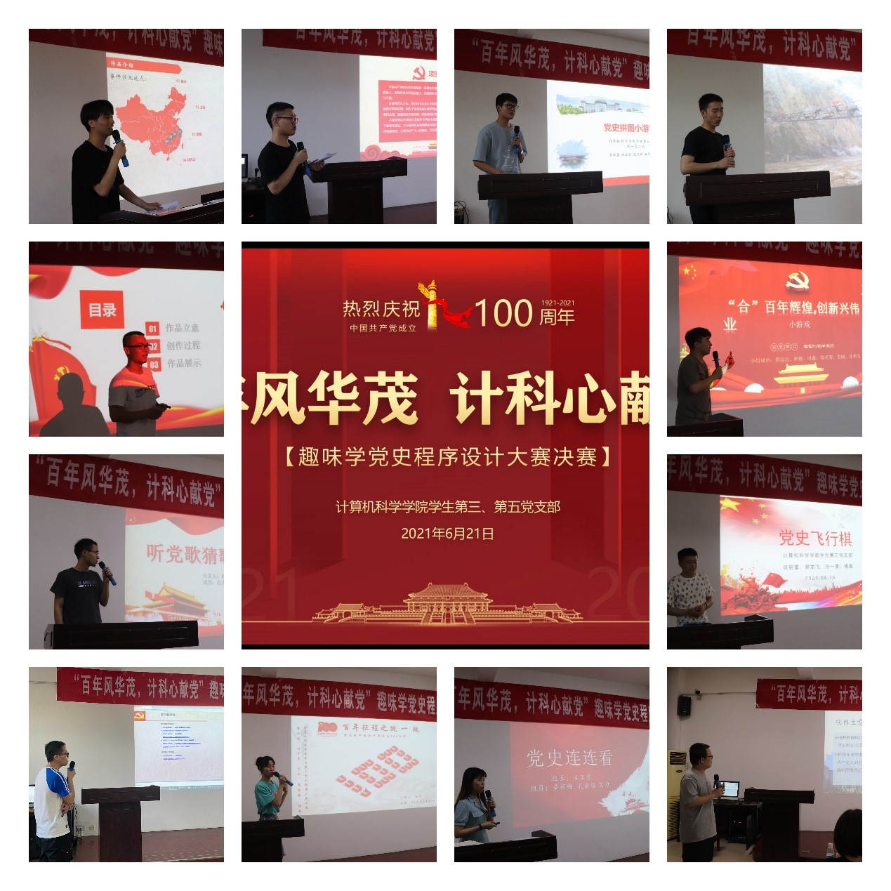 为进一步加强党史学习教育实效,将党史学习与专业特色相结合,以喜闻悦见的方式趣学党史,必赢官网学生第三、第五党支部于2021年6月21日晚在文津楼3412室学院报告厅成功举办“百年风华茂 计科心献党”趣味学党史程序设计大赛决赛。本次活动由支部书记任仰、禹棋洺同志主持,学院党委书记王耀明、研究生辅导员蒋江红、研工部杨雅程老师及各学院研究生党支部书记代表等作为评委参加活动。
