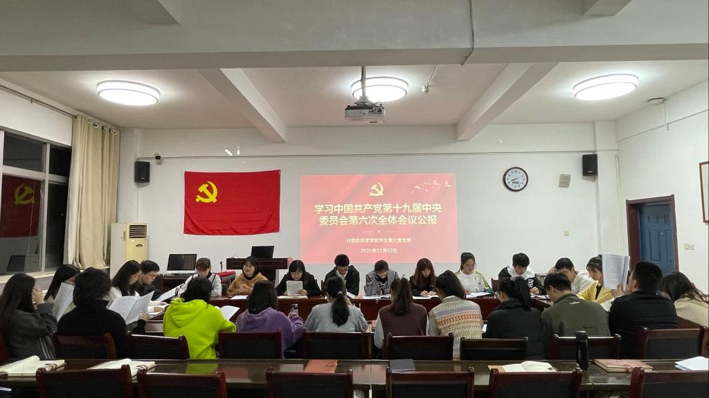 党的十九届六中全会是在中国共产党百年华诞之际,在“两个一百年”奋斗目标交汇重大历史关头,召开的一次具有里程碑意义的会议。学生第六党支部将继续深入领会全会精神,推动理论学习与实践相结合,以习近平新时代中国特色社会主义思想为指导,勤奋学习,锐意进取,交出新时代青年的满意答卷。