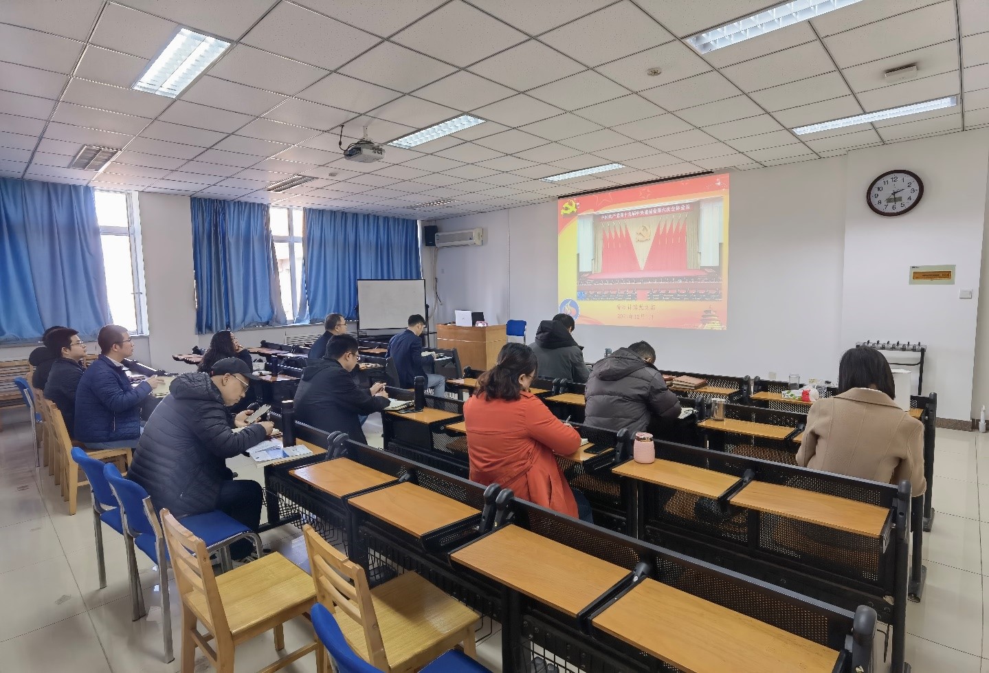 随后,王耀明听取了支部工作汇报,并和同志们交流了学习心得体会,他指出,《决议》总结了党的百年奋斗重大成就和历史经验,突出了中国特色社会主义新时代这个重点,支部党员应从中心业务着力,把学习贯彻到行动实践中,用创新性和突破性的业绩推进党建和学院建设高质量发展。