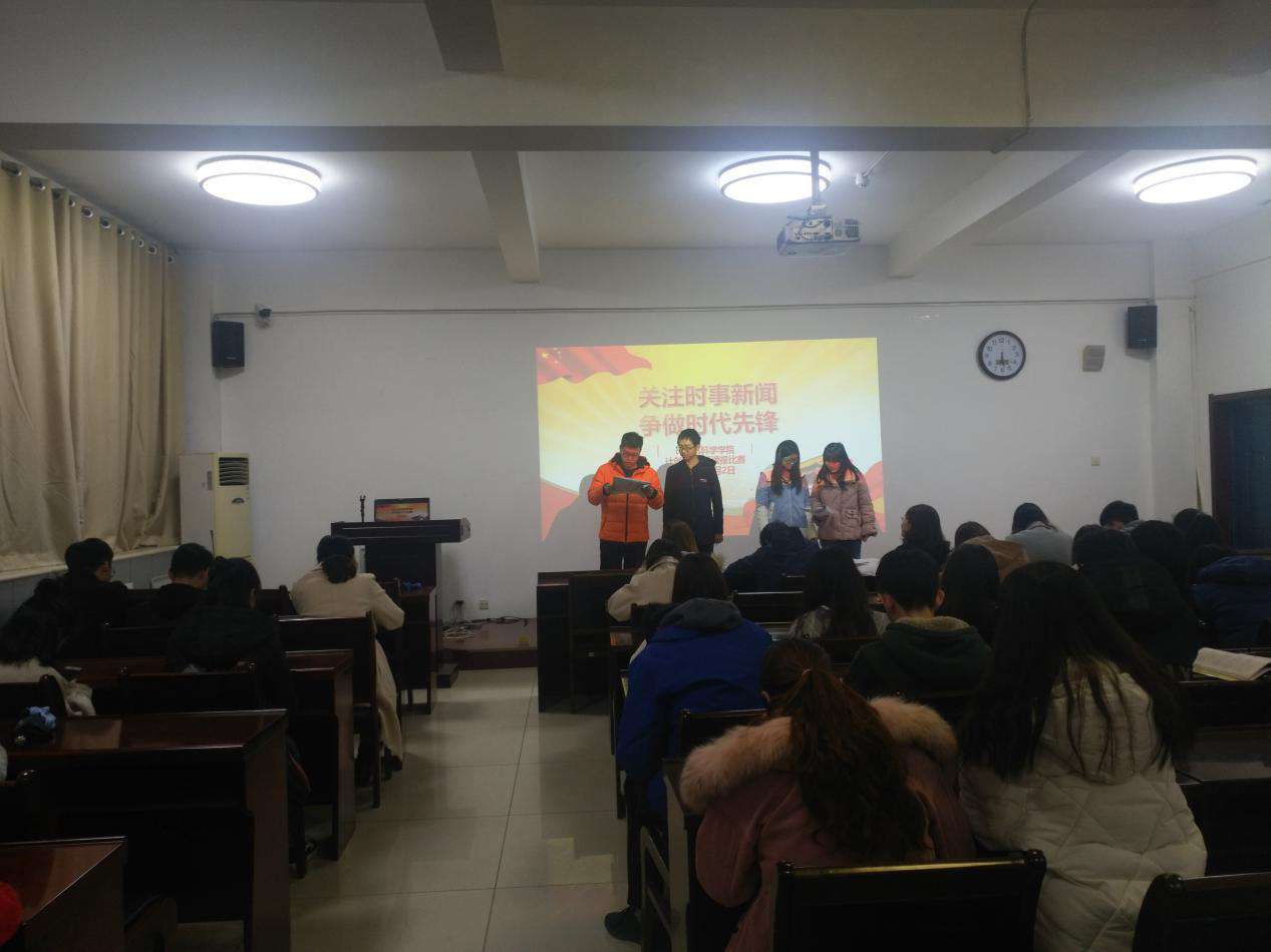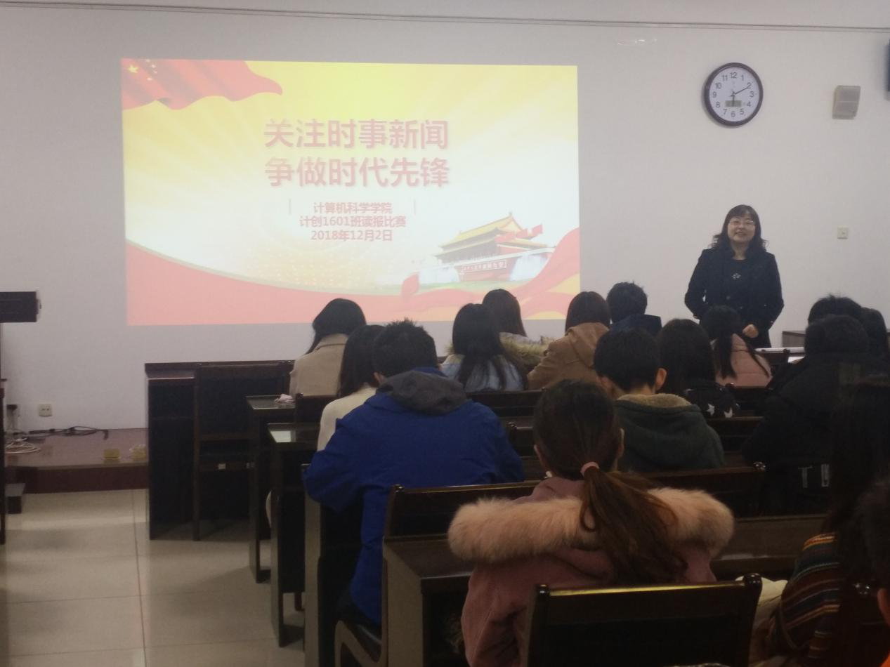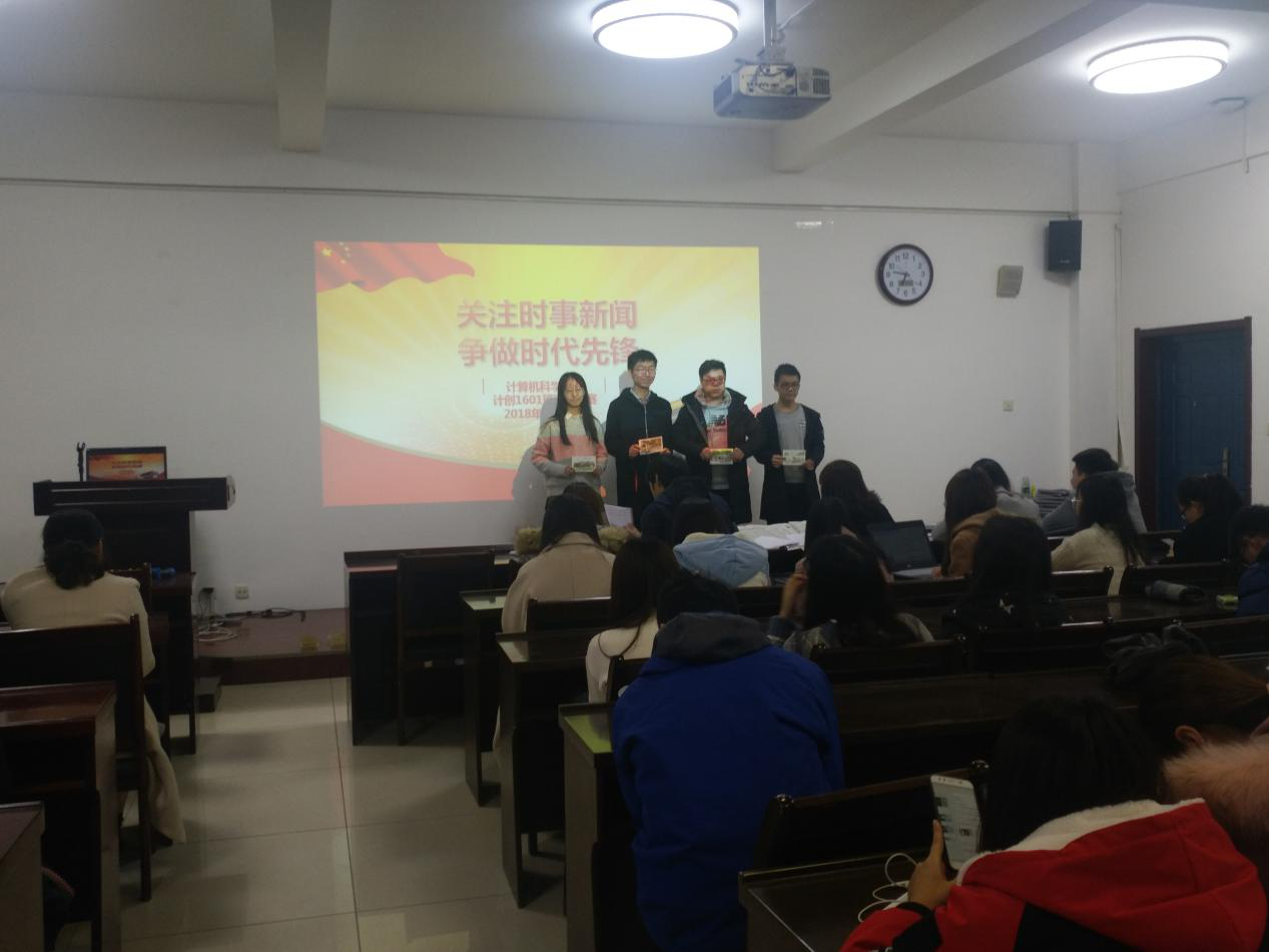 12月2日晚,必赢官网2016级计创班组织的团日活动“关注时事新闻,争做时代先锋”在长安校区文津楼学院报告厅成功举办。辅导员郭康凌主持了此活动,2016级计创班全体学生参加了该活动。