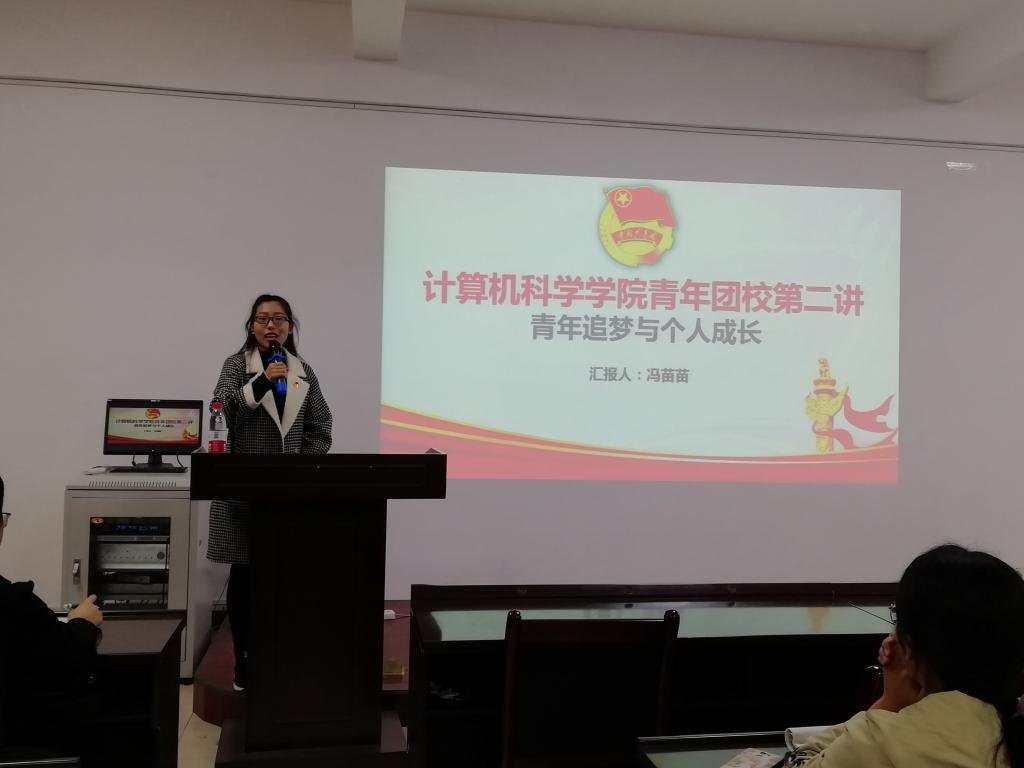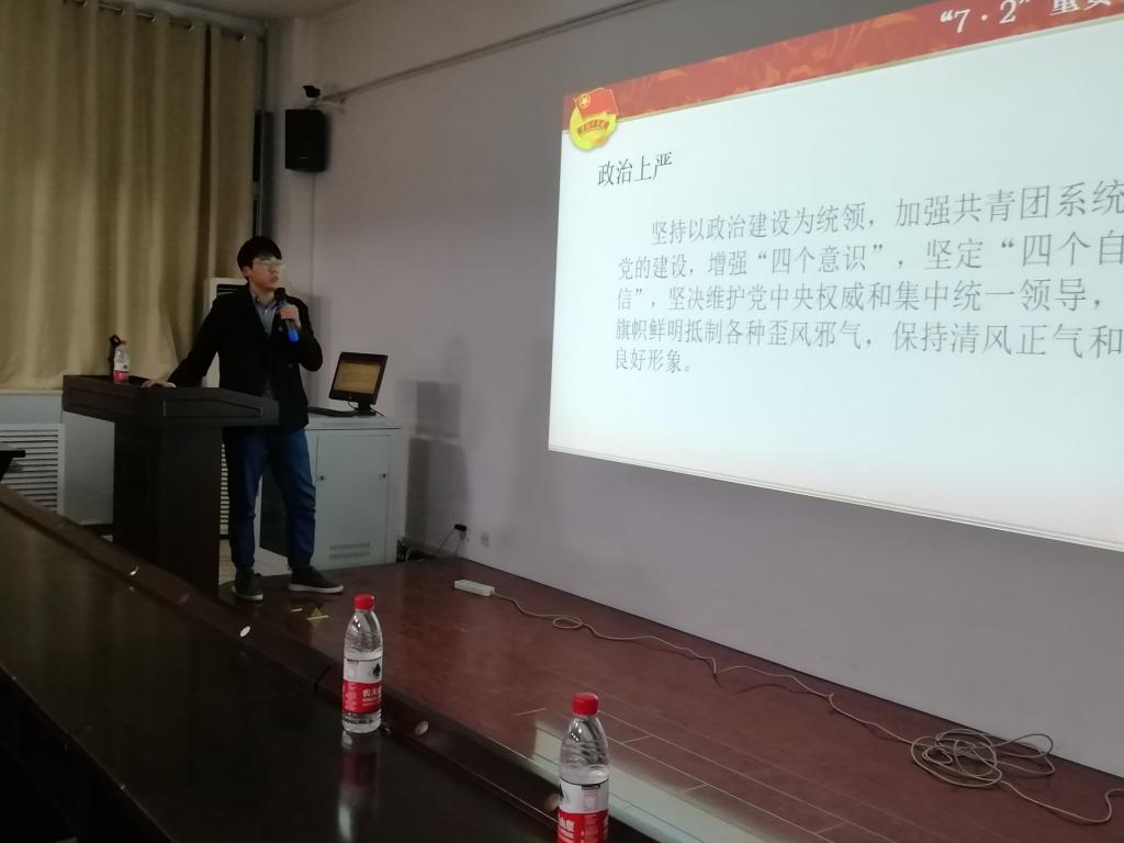 随后,必赢官网团委副书记、2016级计算机科学与技术专业冯苗苗、2016级计创专业马俊虎同学做《青年追梦与个人成长》的主题讲授。马俊虎分享了学习习近平总书记“7.2”重要讲话精神的体会,从党旗所指就是团旗所向、引领青年成为时代新人、保持清风正气良好形象三个方向展开授课,鼓励同学们要努力掌握专业本领,提高自身素质;他强调,要去“四化”强“三性”,青年一代要毫不犹豫坚持党的领导,坚定不移走中国特色社会主义群团发展道路。冯苗苗主要从团史、团的基本知识、团务工作、如何做一名合格的团干部四个方面入手,详细地介绍了团的性质、入团条件、离团、团籍的保留、团的全国代表大会等基本知识,分享了做一名合格的团干部的经验,要坚定理想信念、心系广大青年、提高工作能力、锻炼优良作风。