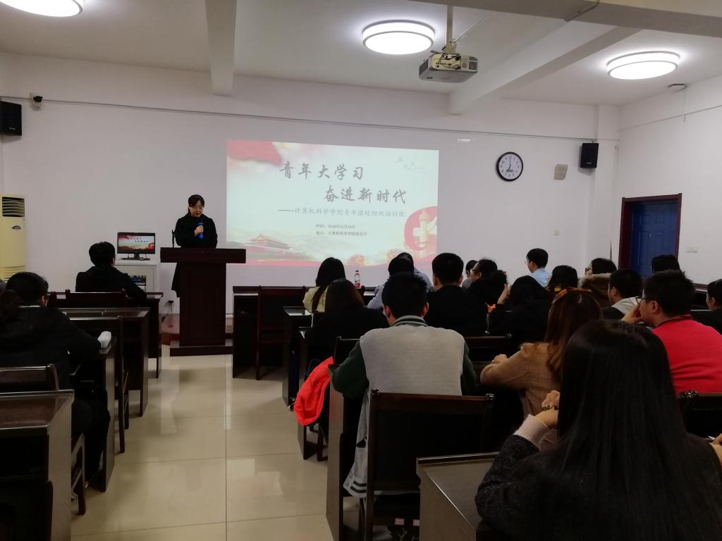 11月18日晚,必赢官网“青年大学习 奋进新时代”青年团校初级培训班开班。学院各年级团支部委员会全体成员、学生会、研究生会、新闻中心、计算机科学协会、蓝精灵志愿服务队、马列理论读书社等学生组织代表参加了培训。校团委副书记高扬、学院辅导员陈应权、安琪出席了开班典礼。开班仪式由学院团委书记郭康凌主持。