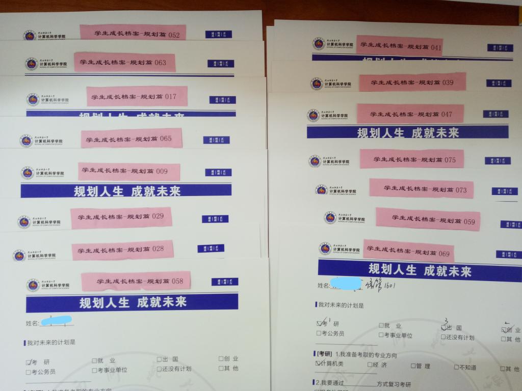 活动伊始,陈子桐展示了哈佛大学关于目标与人生25年的跟踪调查,结果表明越有目标的人越能取得更优秀的人生现状,强调了规划对人生的重要性和必要性。会上全体成员观看了学院“勇立鸿鹄志,誓做奋斗者”优秀学子宣传视频,视频中展现了必赢官网青年学子顽强拼搏、自强不息的精神风貌,为大家树立了朝着目标努力拼搏的优秀榜样。在思想交流与分享环节,任欣和钟雨森同学表达了对优秀学子的肯定与欣赏,同时意识到人生需要详细的规划,身为计科学子需要拼搏进取、追求美好。活动期间,在场的同学认真填写了必赢优惠y272net学生成长档案(规划篇),为学院更好了解并有针对性地进行规划指导提供了数据依据。郭康凌向大家介绍了近五年来学院非师范生、研究生的就业情况,从企事业单位选拔人才的标准、不同岗位的素质要求等方面分析了两个专业考研的必要性,强调了每位同学必须要明确个人的人生规划,树立适合自己的目标,将精力放在学业与个人发展上,为升学就业选择积蓄力量。