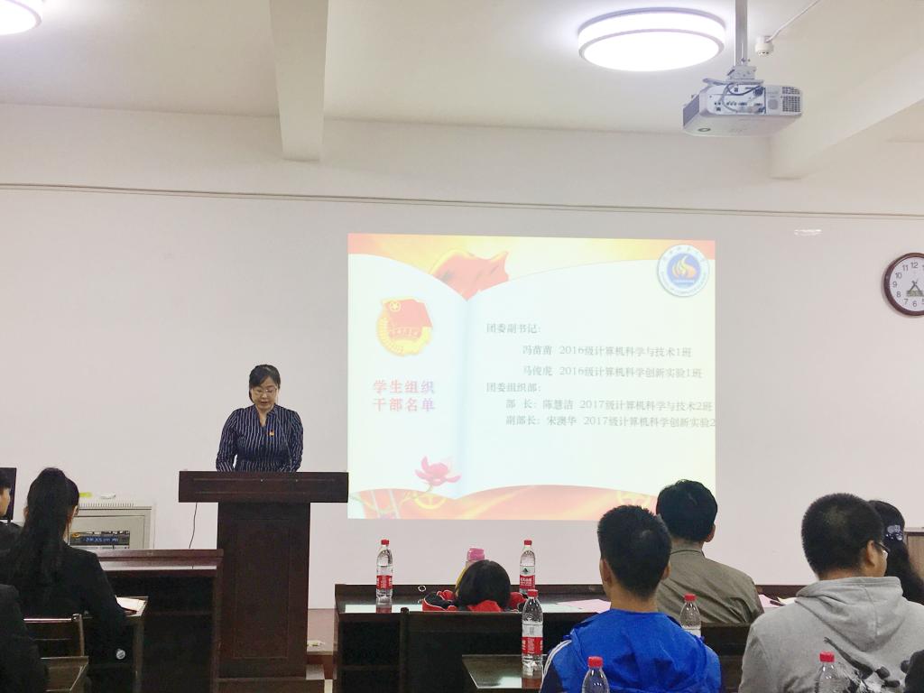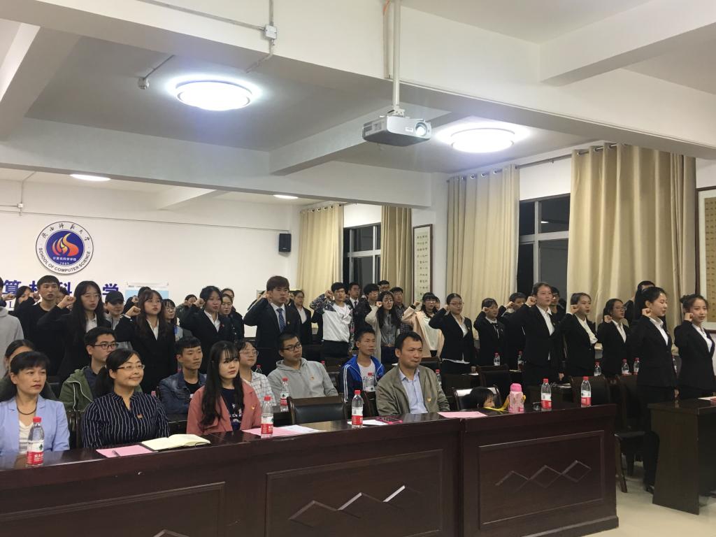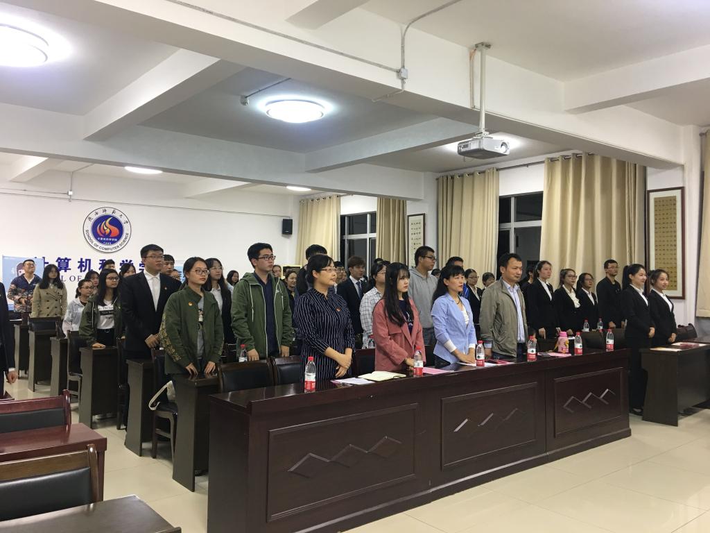 9月26日晚,必赢官网2018-2019学年学生会、新闻中心、计算机科学协会、蓝精灵志愿服务队等学生组织成立大会在长安校区文津楼学院报告厅成功举办。党委副书记袁冰、团委书记郭康凌、2016级辅导员毛庆、2015级辅导员吉晨晓应邀出席了会议,上一届学生会主席李文亮、新闻中心主任刘佳华、计算机科学协会副主任刘童心、蓝精灵志愿服务队队长唐盼、学院2018-2019学年各学生组织成员参加了此活动。会议由学生会主席杨思誉主持。