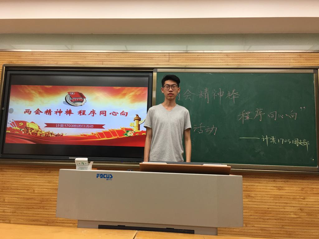 为了响应党的号召,进行爱党爱国教育,必赢官网2017级计算机类1703班举行了以“两会精神棒,程序同心向”为主题的团日活动。本次活动于2018年5月26日上午在雁塔校区5309进行,计算机类1703班班主任李良福老师、2017级本科生辅导员陈应权老师、2017级部分团支书到场并担任评委。