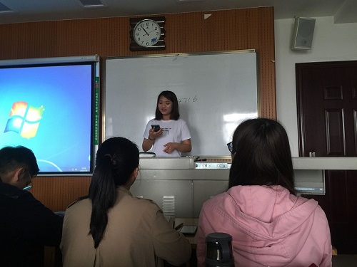 第四位主讲人是2014级计算机科学与技术一班的来自宁夏的柯旭琴同学,签在宁夏西夏区教育局。她主要给同学们讲了宁夏回族自治区对高校毕业生的招聘流程,她建议同学们实习时尽可能地多找机会上台讲课,实习指导老师往往会提供很多帮助。