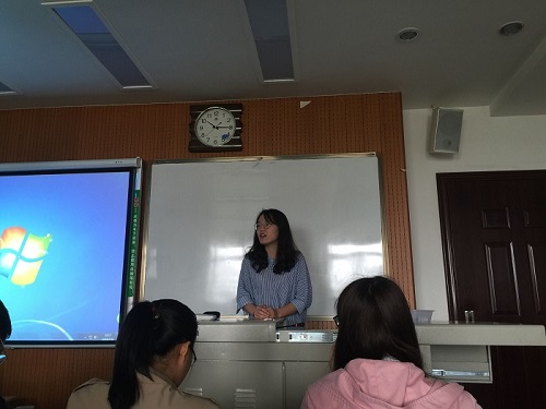 第三位主讲人是2014级计算机科学与技术一班的来自云南的皇甫瑞婷同学,签于曲靖一中麒麟学校,她告诉同学们在面试时注意言行举止大方得体,太紧张往往会扣分,她强调实习过程是非常重要的,要学会争取表现的机会。