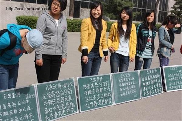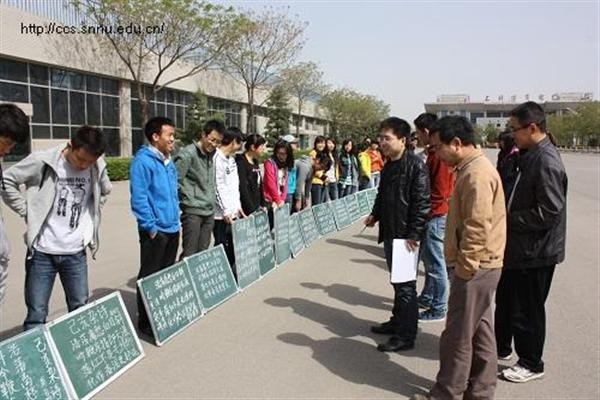 本次比赛通过赛前组织、训练提高、院内比赛三个环节。以宿舍为单位,规定书写内容为龚自珍的《己亥杂诗》,进行粉笔字和白板字两项的评比。