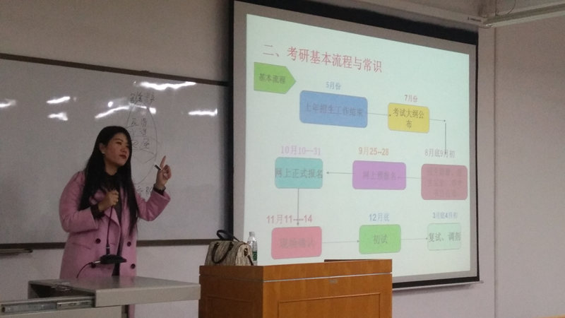 2017年3月3日星期四晚上7:20,必赢官网师非范生就业指导课程在文津楼二段319开课,2014级全体非师范专业生参加了此次课程,课程主要分两部分构成,一部分是针对考研的同学开设的考研规划课程,另一部分是针对就业的同学开设的就业指导课程,第一次的课程主讲老师是学院邀请的王艳茹老师主讲,为考研的同学们讲解了2018年的考研全程规划,同学们颇有收获。